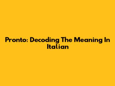 Pronto: Decoding The Meaning In Italian